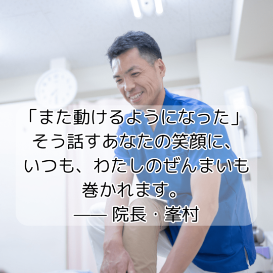 当院では、鍼灸と整体で深層筋・自律神経・神経系にアプローチし、体の奥から、「また動ける自分」を取り戻す治療を行っています。